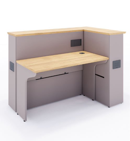 Essa linha oferece uma ampla variedade de balcões de atendimento — em versões retangulares, angulares, altos, baixos, individuais e adaptados para acessibilidade (PNE). Os modelos podem ser complementados com apliques frontais orgânicos, painéis laterais e iluminação em LED, criando composições elegantes e acolhedoras para áreas de recepção.