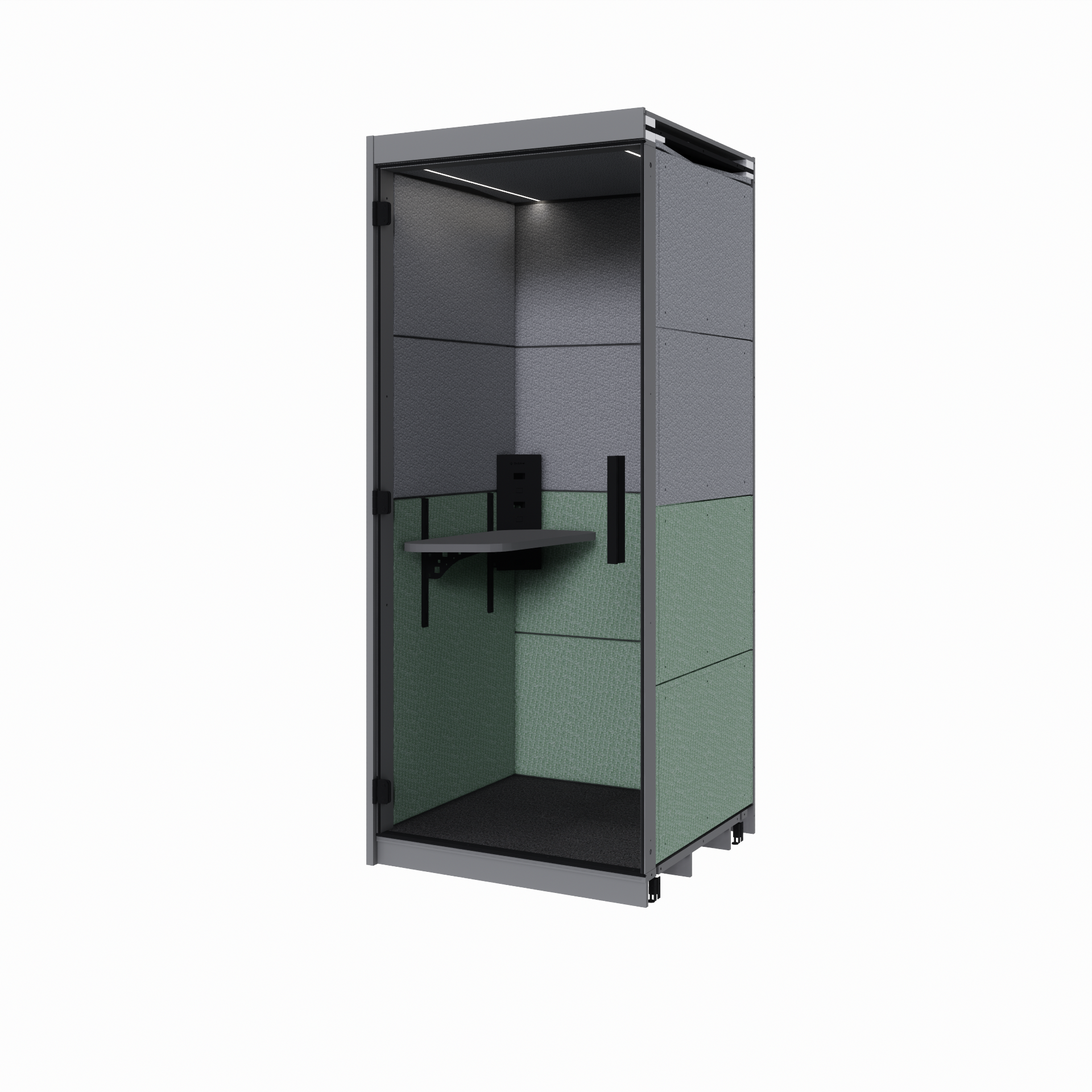 A Linha Frequency é a solução técnica da Gebb Work para foco e privacidade em ambientes corporativos. Projetadas com estrutura acústica eficiente e sistema de ventilação, as cabines garantem conforto para concentração, chamadas privadas e reuniões rápidas.