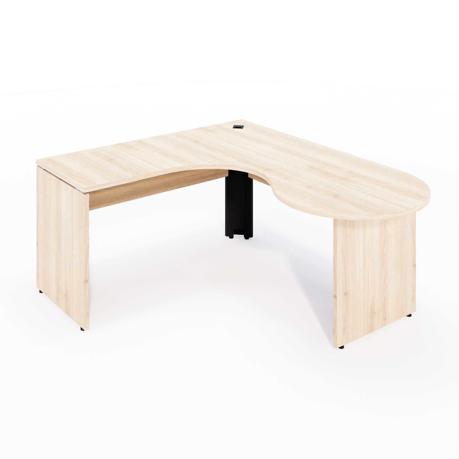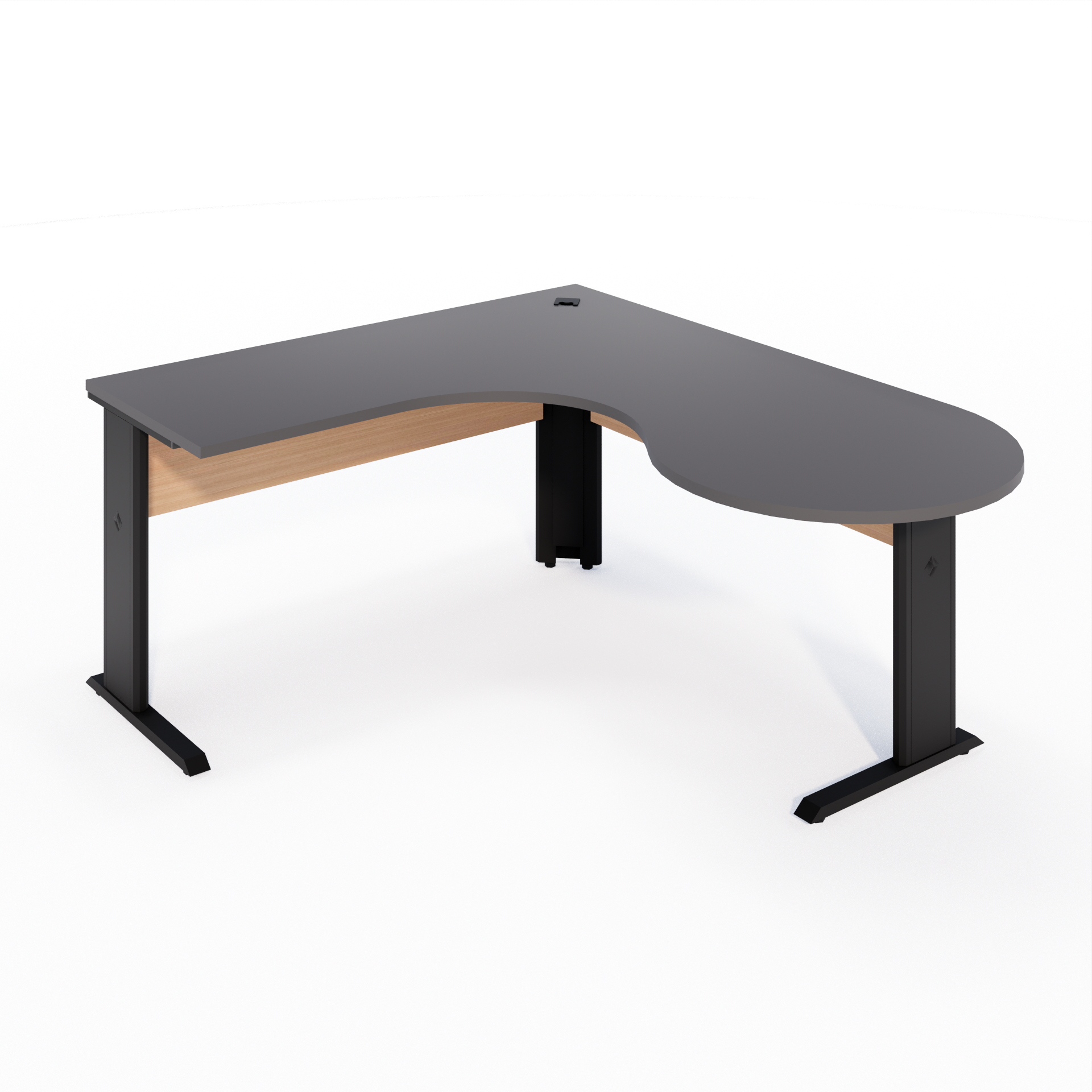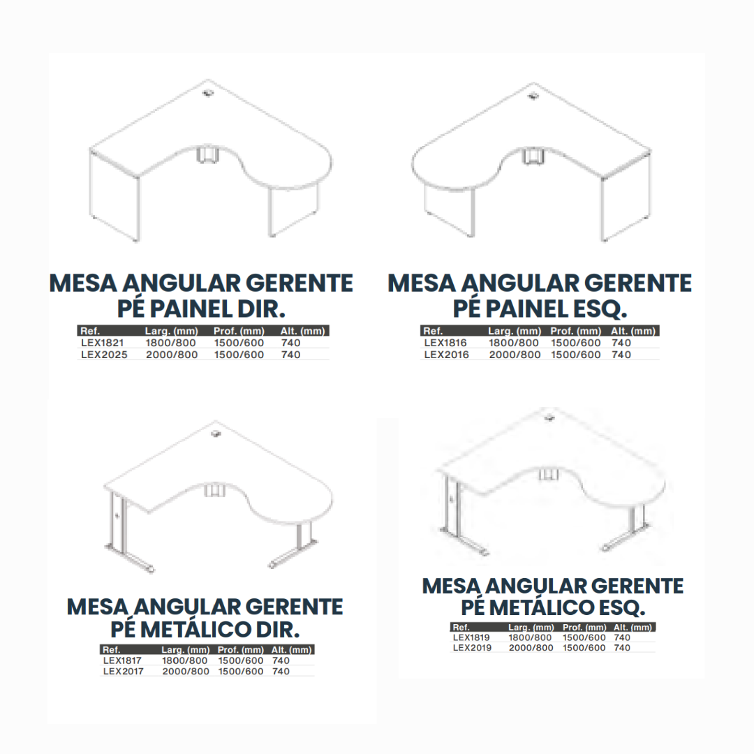 Sofisticação e funcionalidade se encontram nesta mesa angular com pé painel esquerdo. Seu design fluido e robusto oferece conforto visual e excelente aproveitamento de espaço, ideal para ambientes de liderança que exigem presença e praticidade. O painel lateral confere elegância e privacidade, enquanto a ampla superfície de trabalho garante produtividade com estilo.