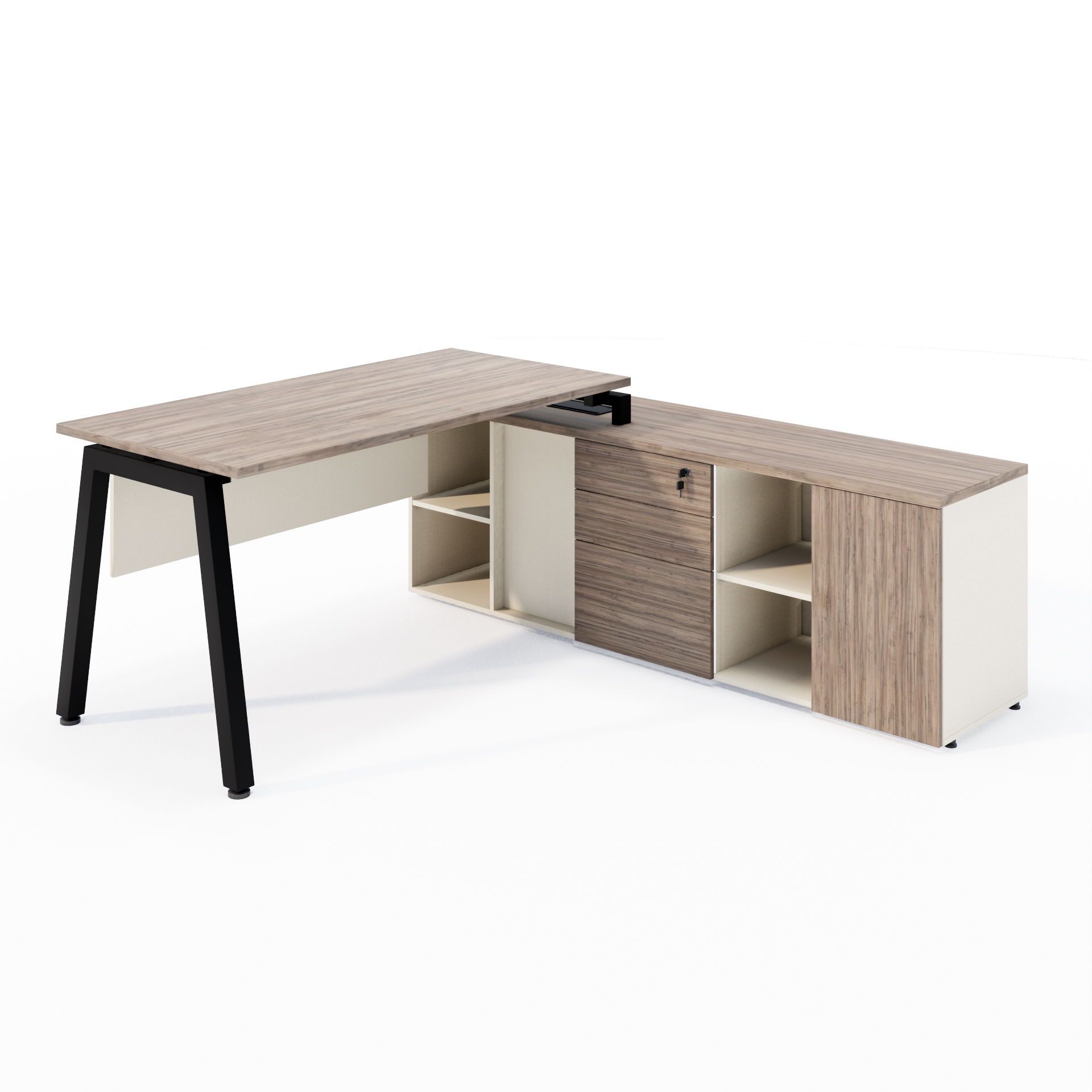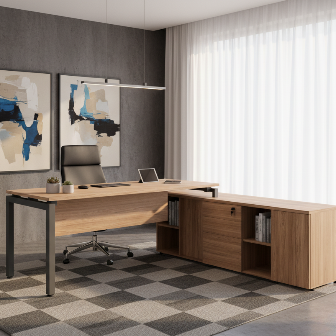 Projetadas para escritórios de liderança, essas mesas oferecem design contemporâneo, estrutura robusta e componentes integrados como armários com gavetas, nichos e portas. Os modelos variam entre pés metálicos tipo cavalete, cavalete em madeira, quadro e trave — cada um com características visuais e funcionais distintas, mas todos mantendo a elegância e a eficiência que a linha Lexus propõe