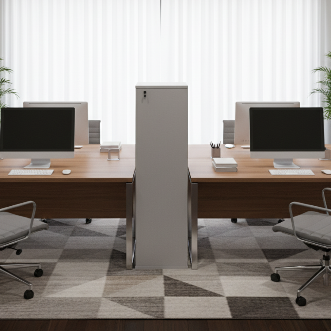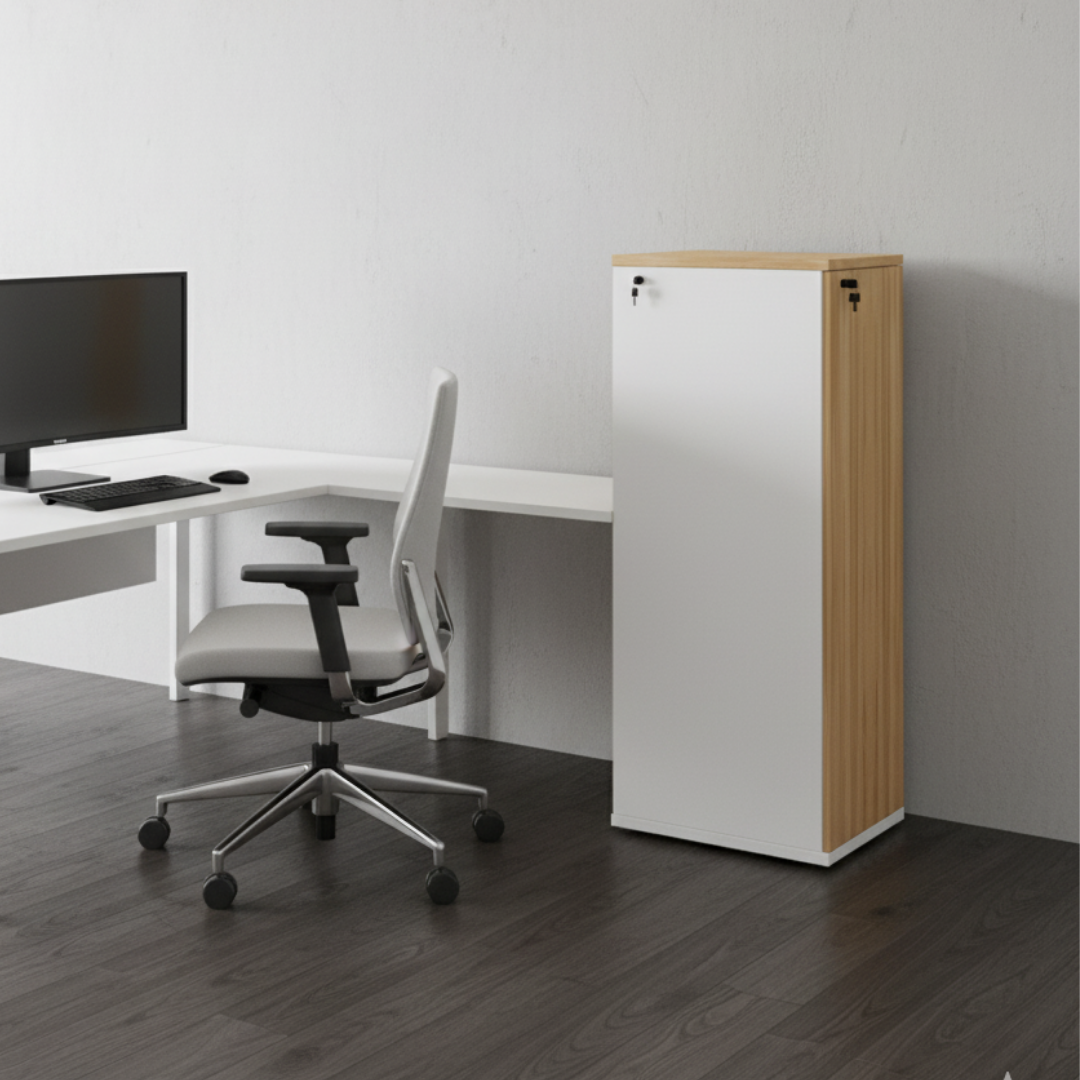 Disponível em três alturas (Baixo, Médio e Alto), a linha permite composições que se adaptam à necessidade de cada projeto, garantindo a segurança dos materiais através de fechamento com chave e um visual coeso para o ambiente corporativo.