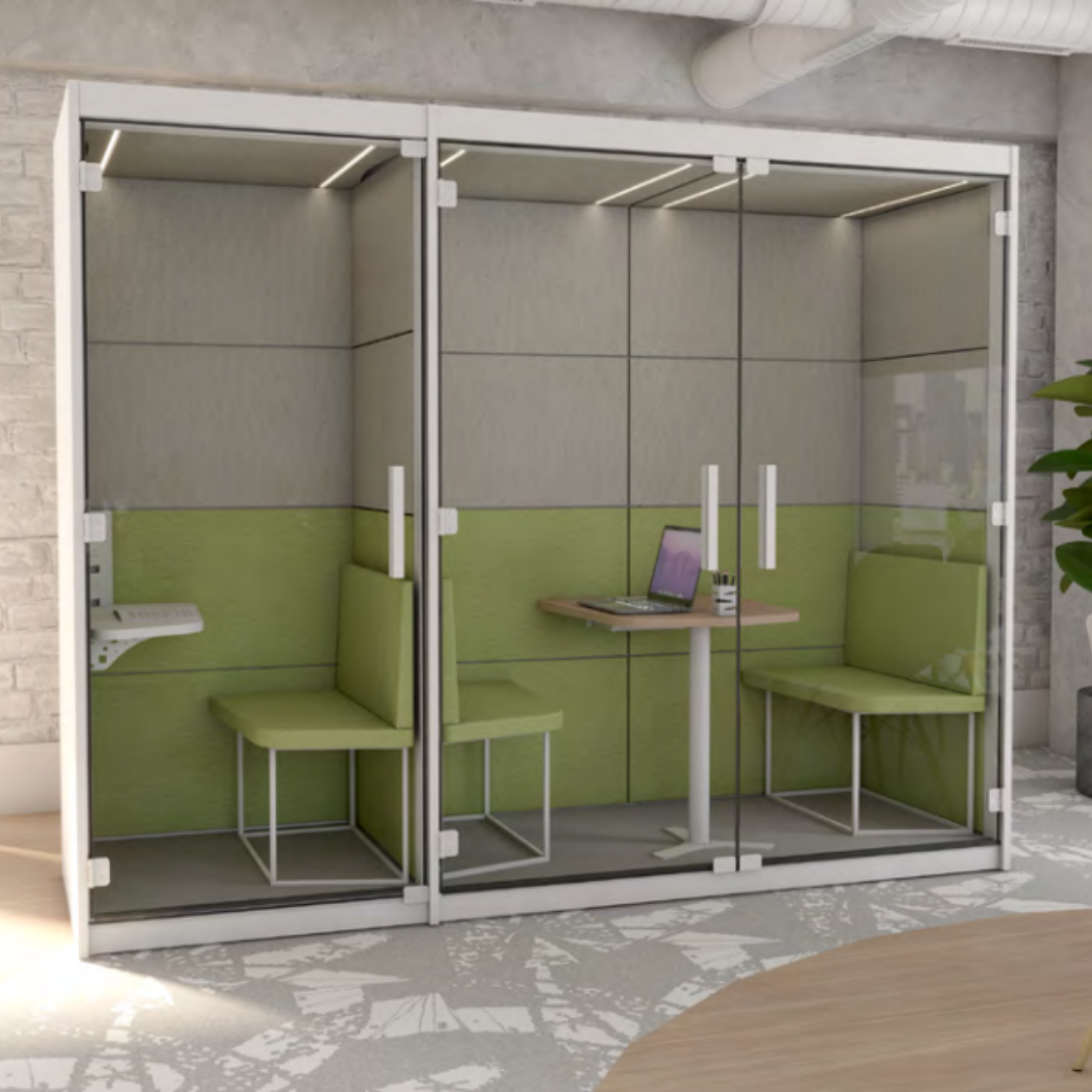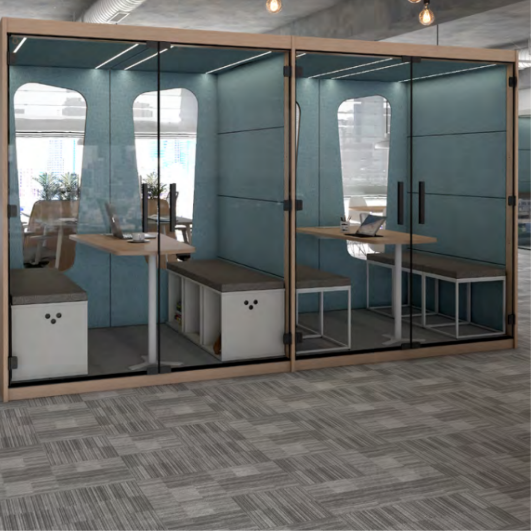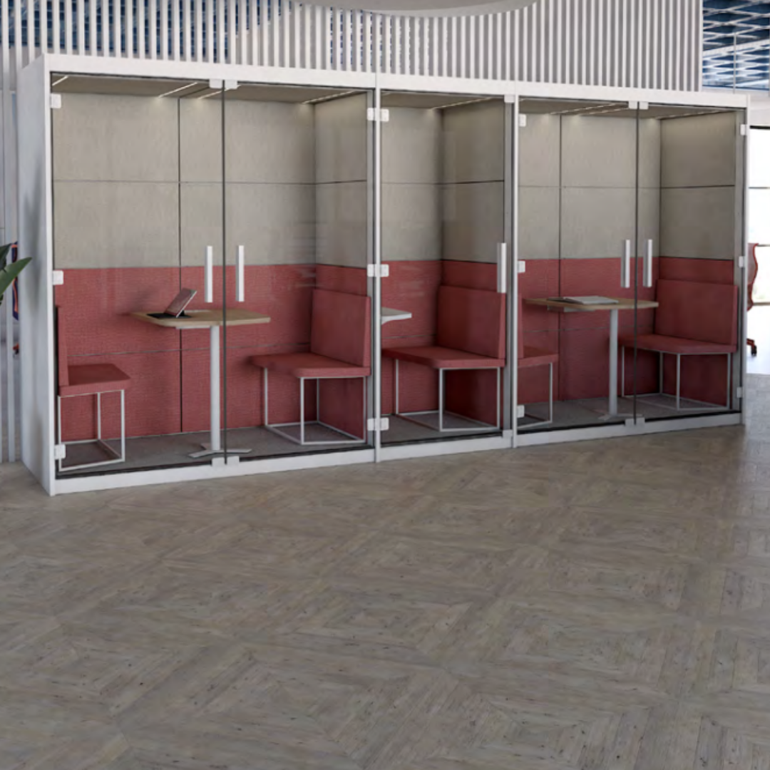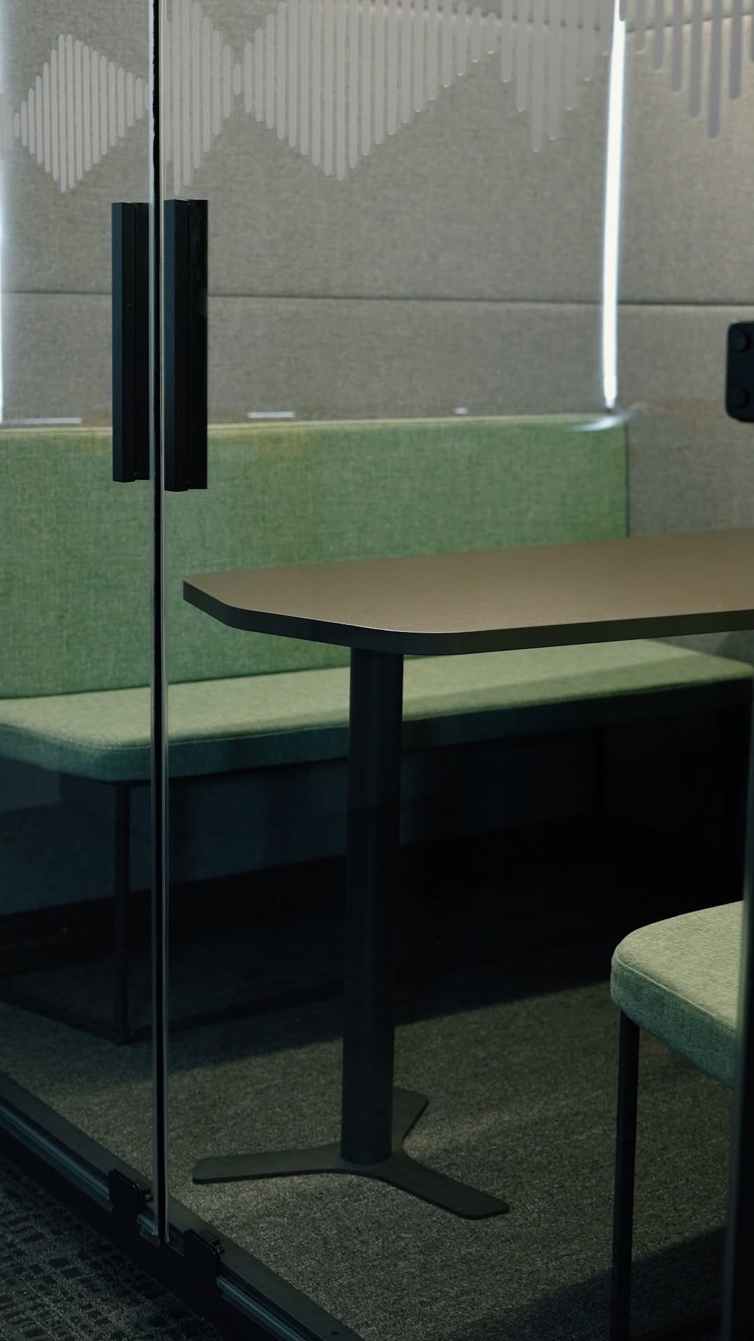 A Linha Frequency é a solução técnica da Gebb Work para foco e privacidade em ambientes corporativos. Projetadas com estrutura acústica eficiente e sistema de ventilação, as cabines garantem conforto para concentração, chamadas privadas e reuniões rápidas.