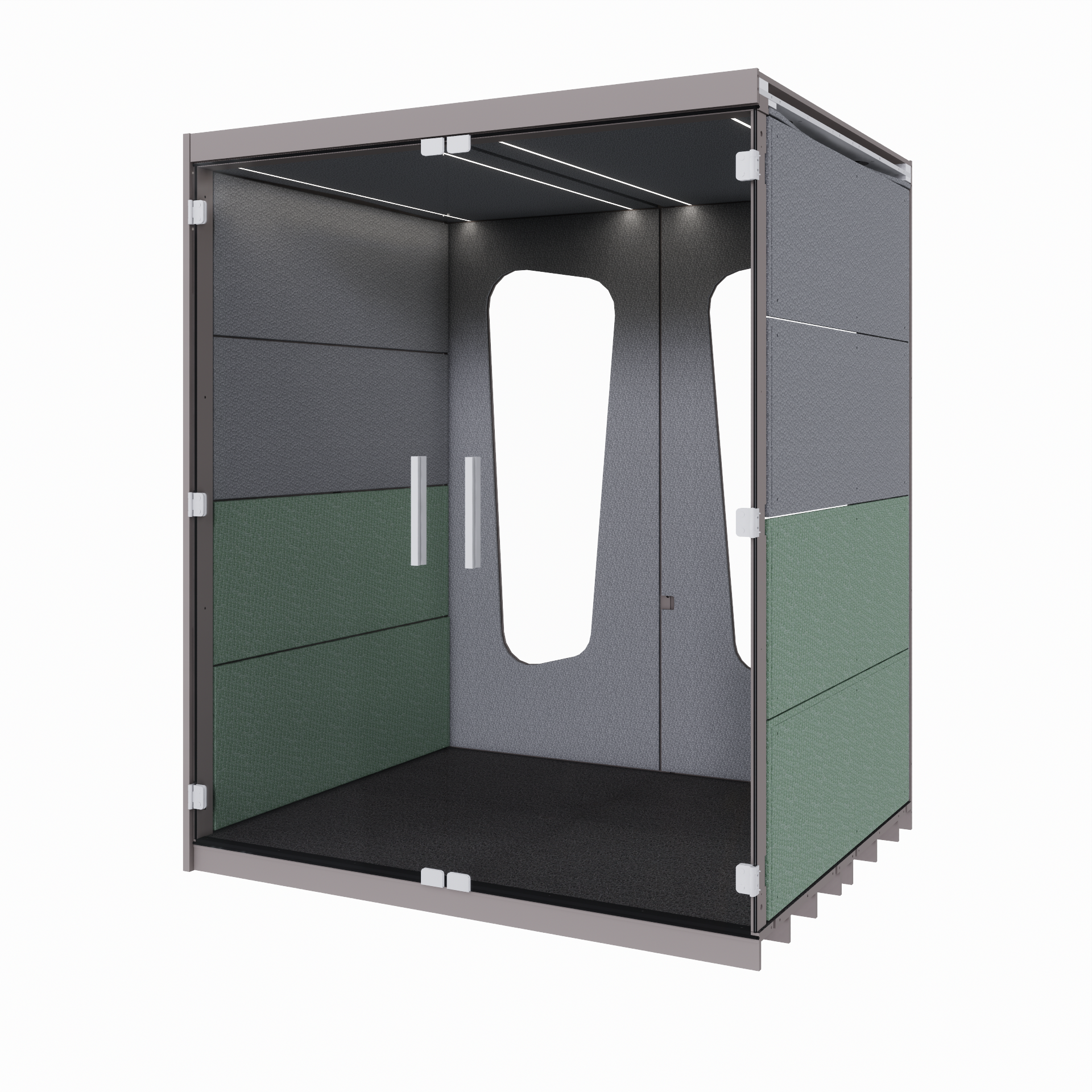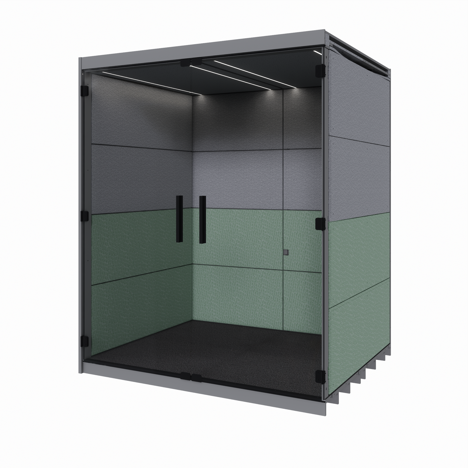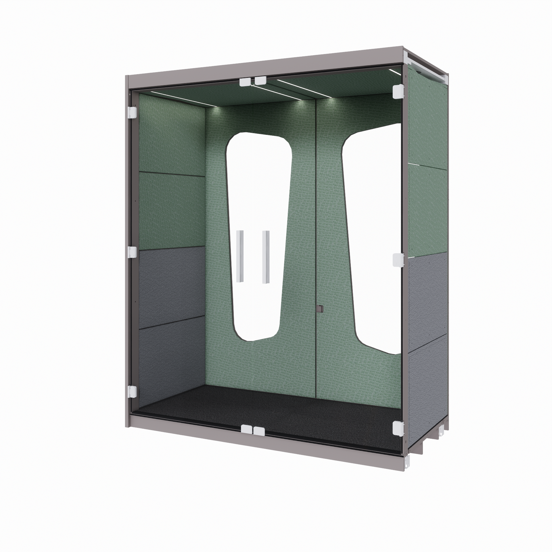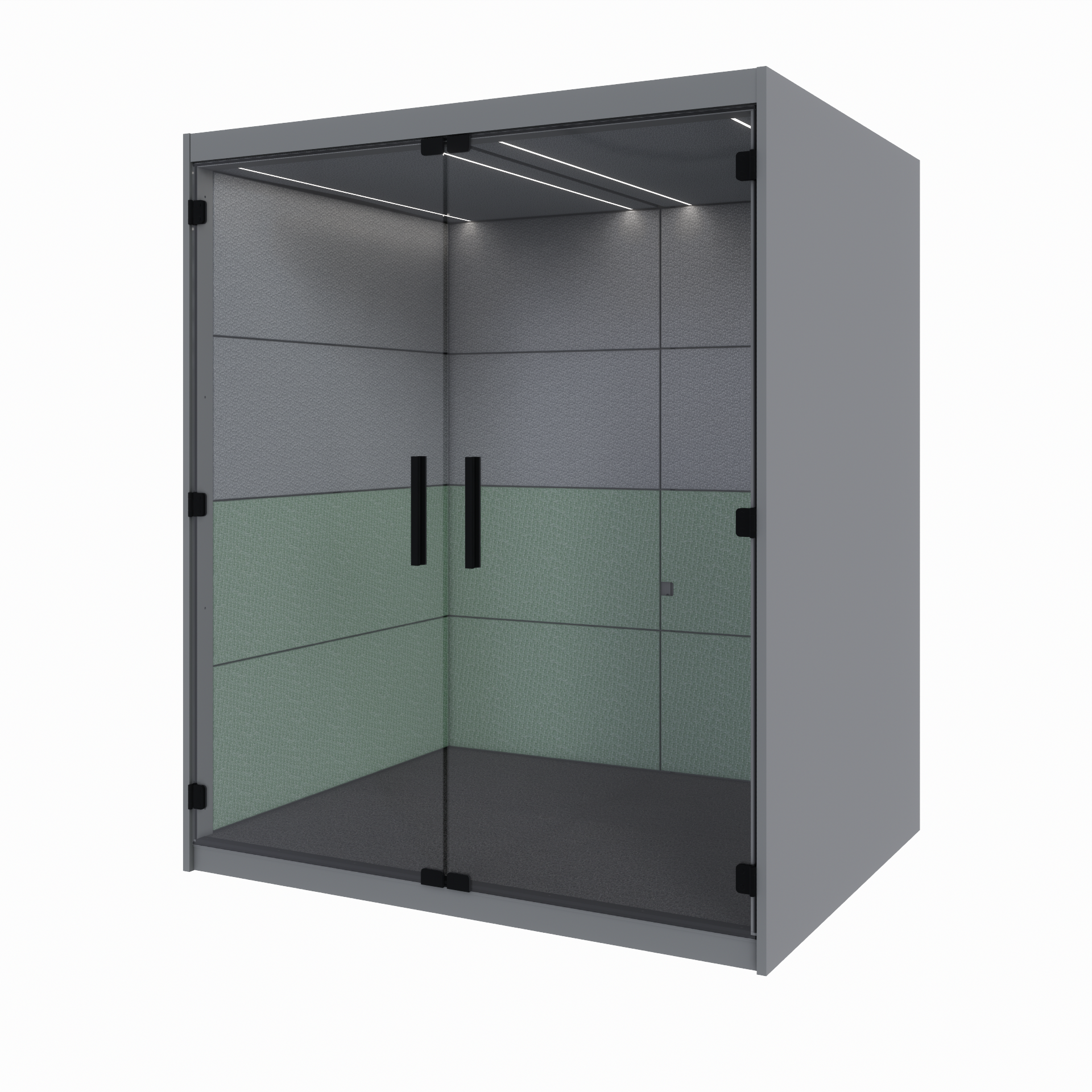 A Linha Frequency é a solução técnica da Gebb Work para foco e privacidade em ambientes corporativos. Projetadas com estrutura acústica eficiente e sistema de ventilação, as cabines garantem conforto para concentração, chamadas privadas e reuniões rápidas.