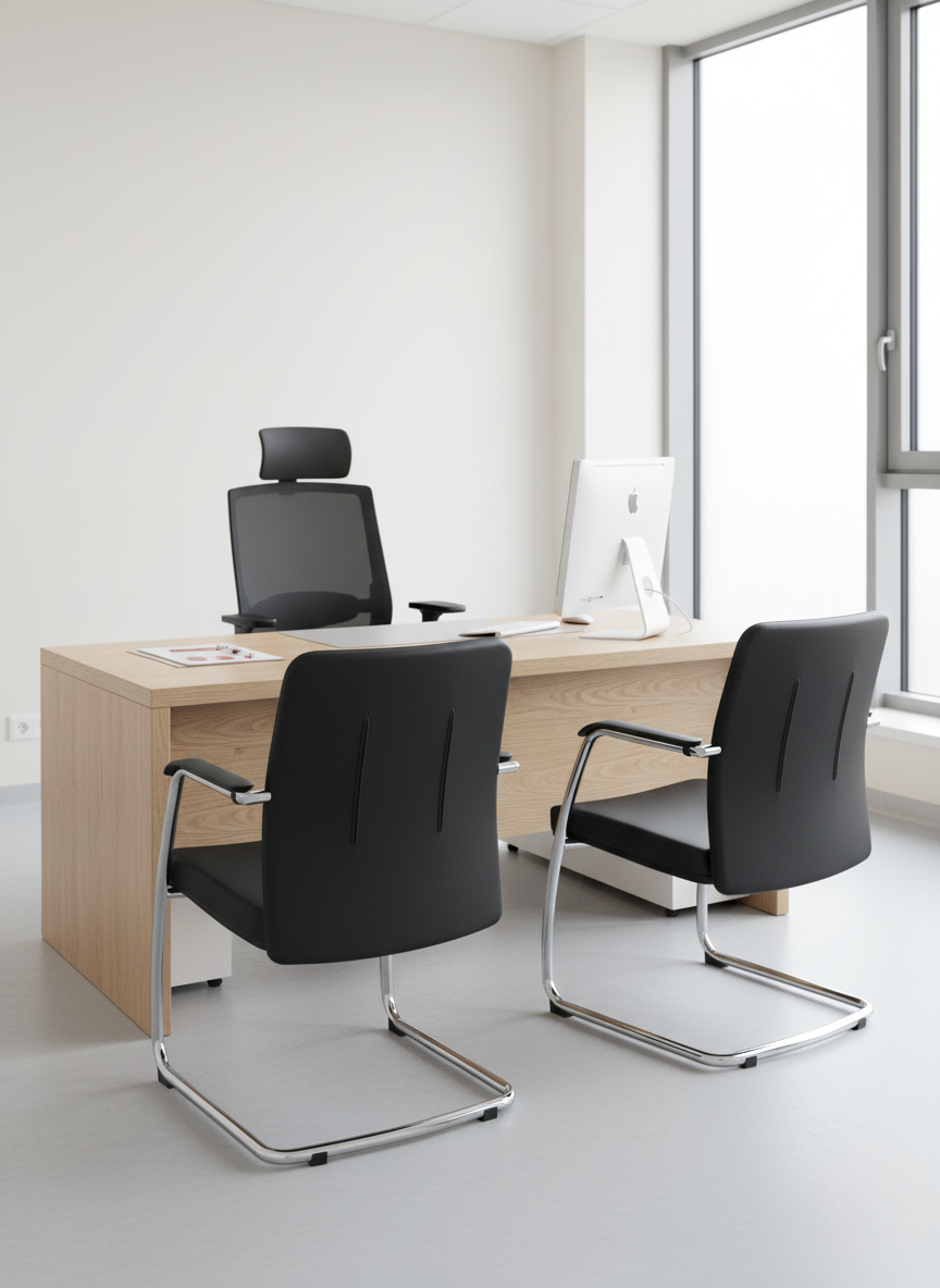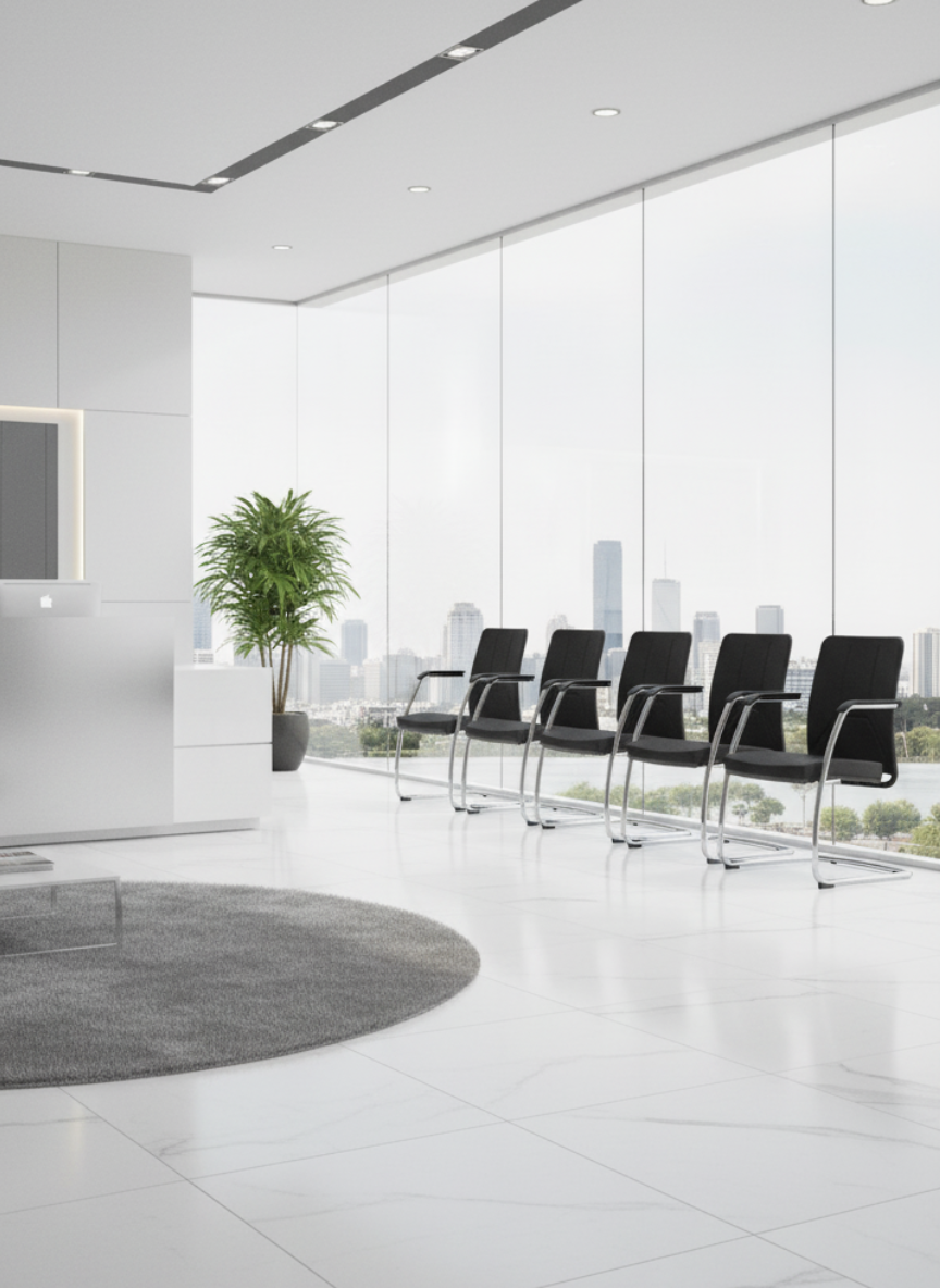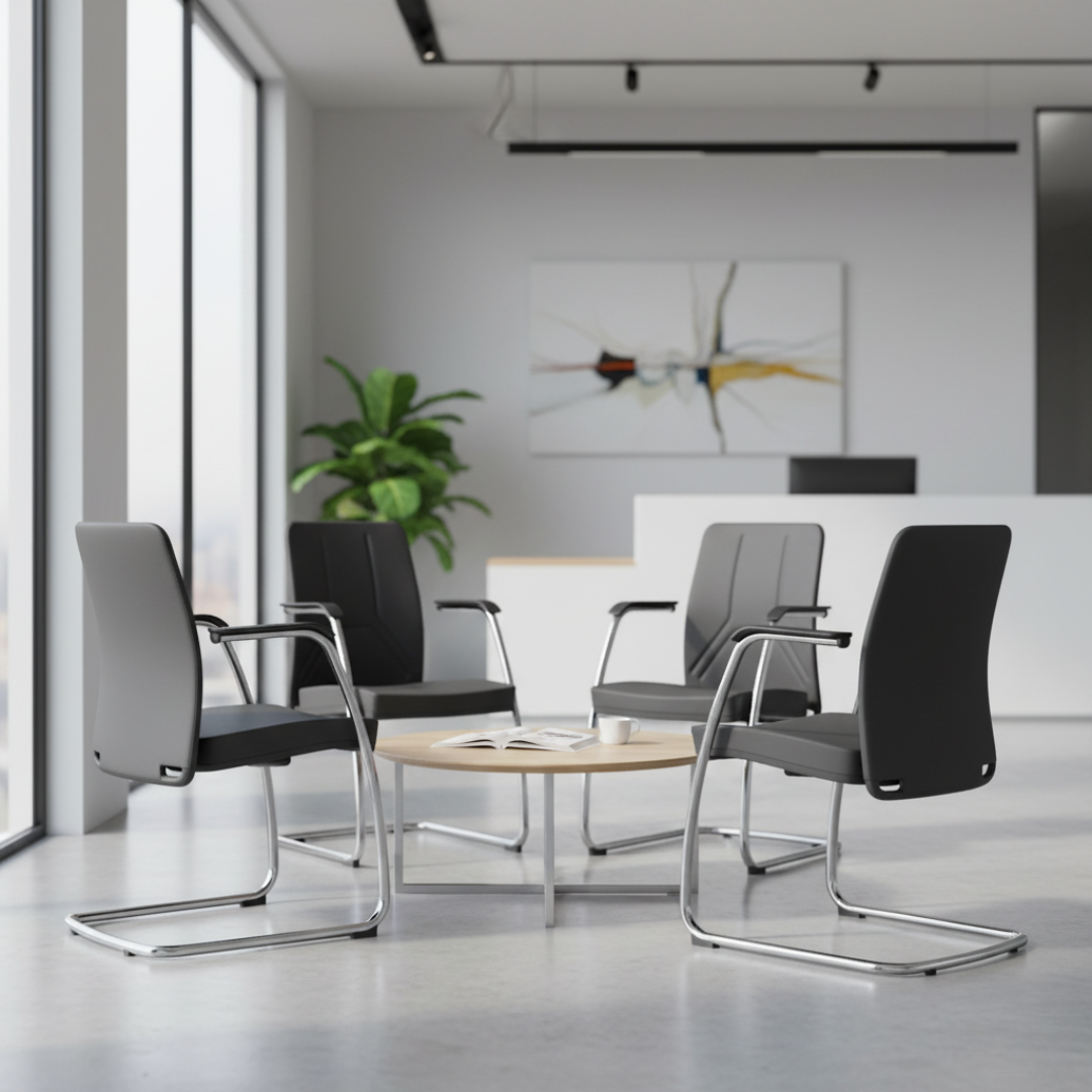 Além dos modelos giratórios, a linha Way é uma plataforma completa que oferece modelos de aproximação (fixos), ideais para ambientes de recepção e reunião. Essa abordagem técnica facilita a padronização visual do mobiliário em todo o projeto, mantendo a coerência estética.