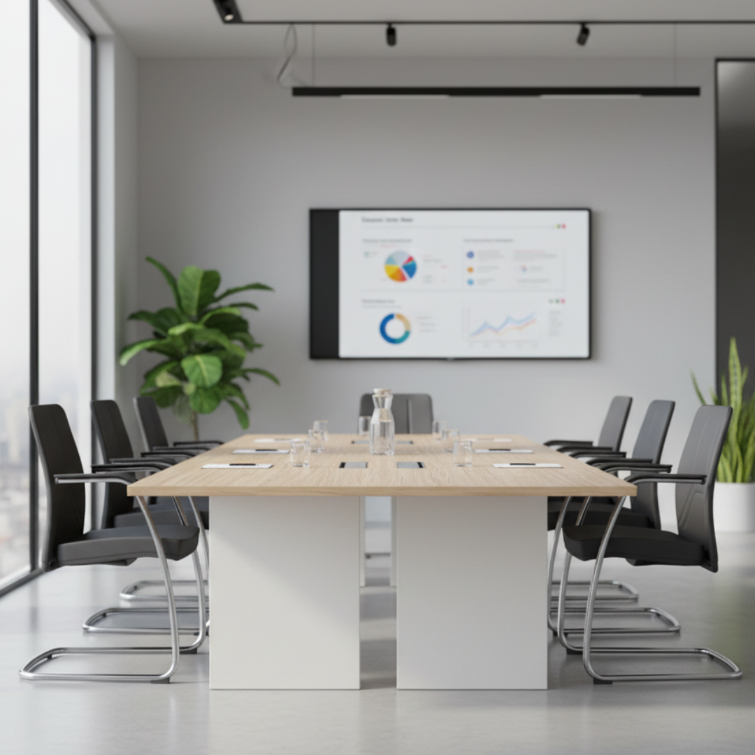 A Linha Lexus é uma plataforma completa, concebida para atender as necessidades de organização e estética de todo o ambiente corporativo. O diferencial técnico reside na sua diversidade estrutural. Oferecemos soluções para mesas de trabalho, plataformas e reunião com quatro modelos distintos de pés: trave, cavalete, quadro e painel.