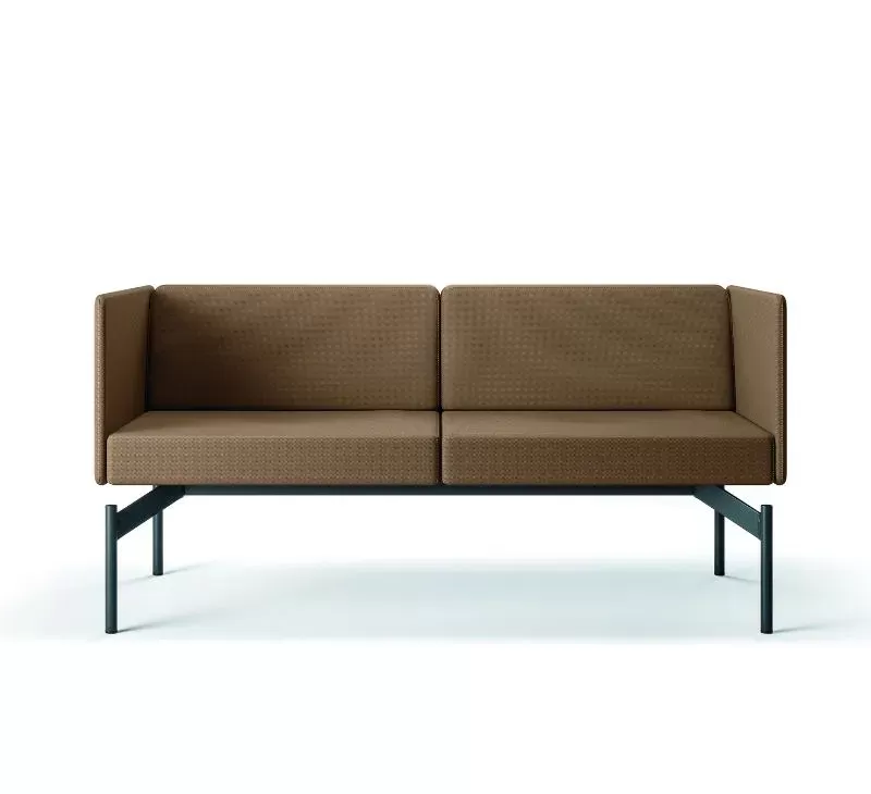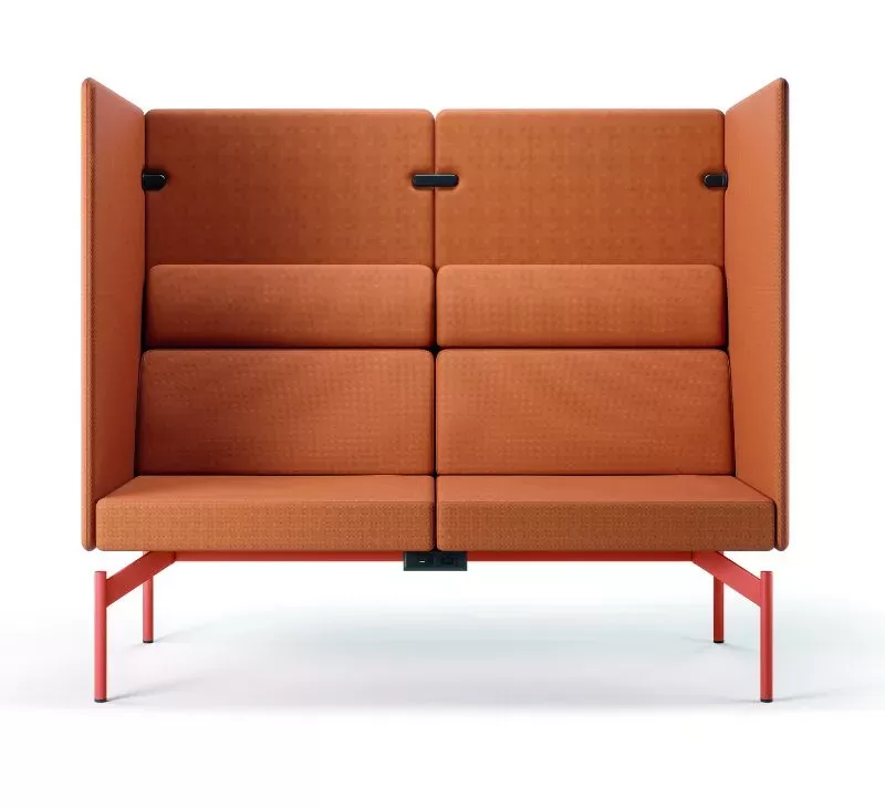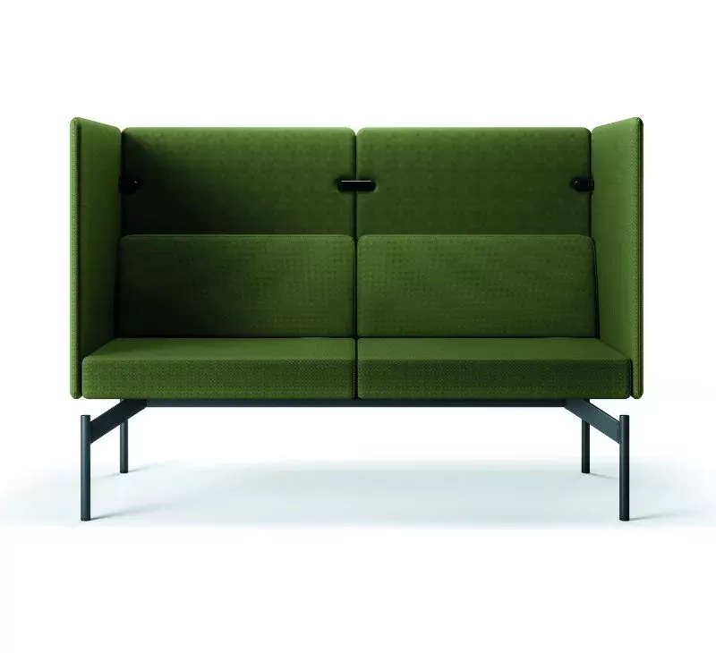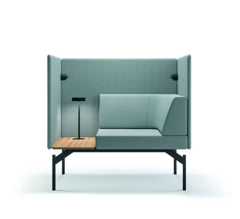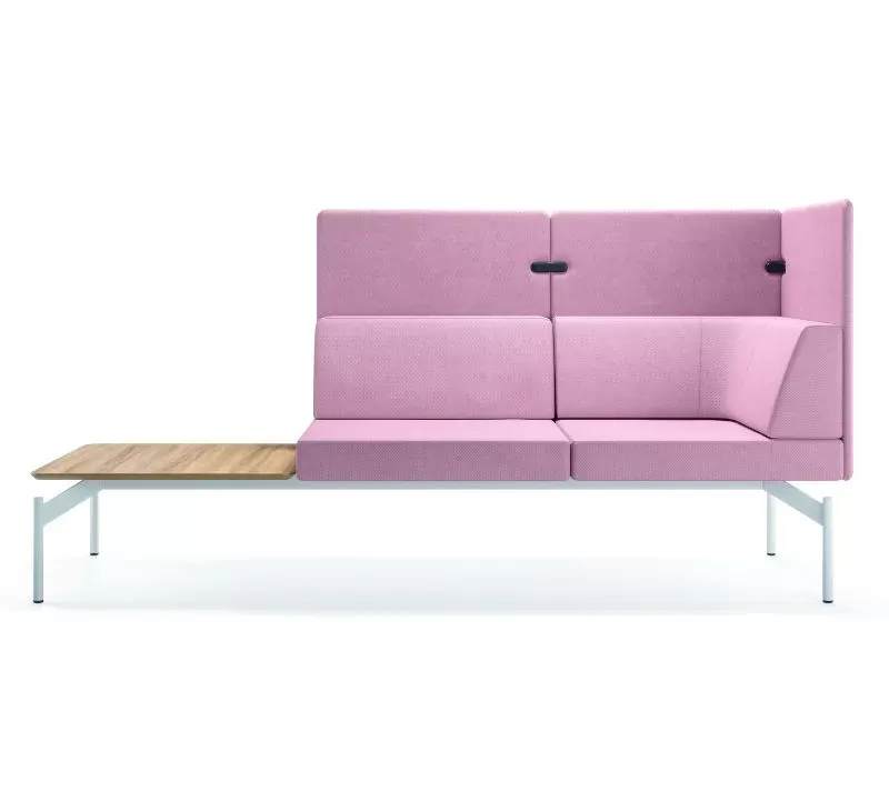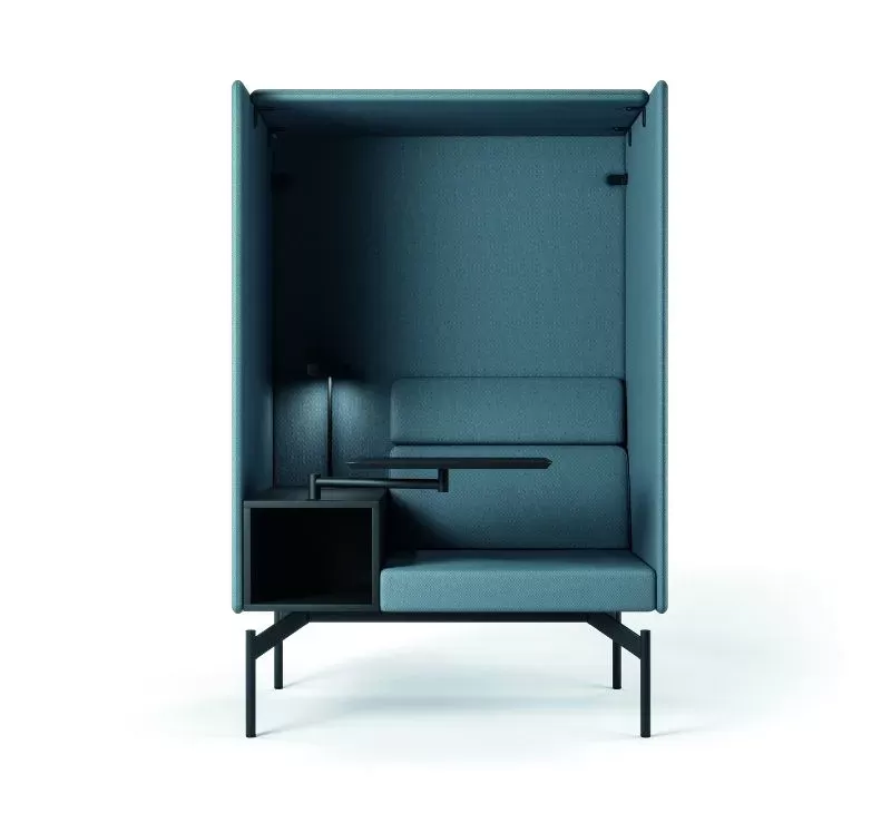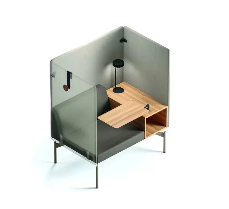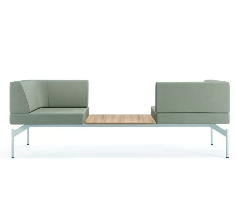 O sistema Float é composto por uma base técnica única, sobre a qual são integrados os demais componentes: módulos estofados, mesas de apoio, painéis de privacidade e acessórios.