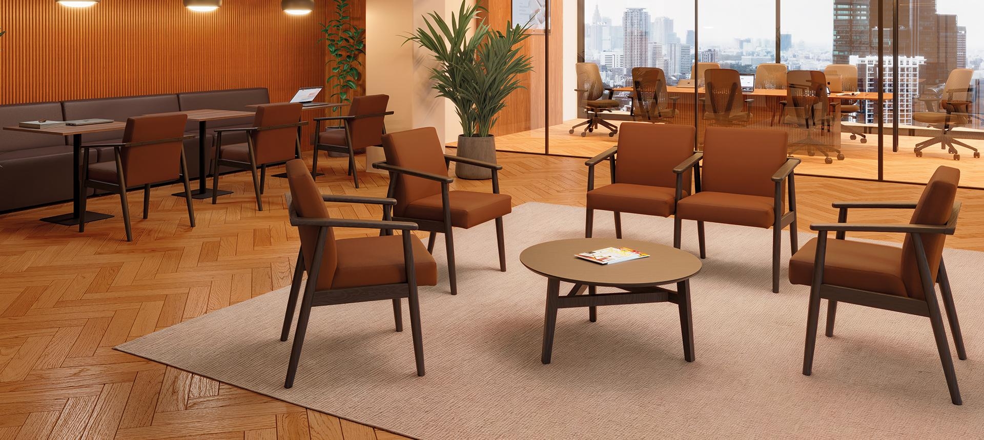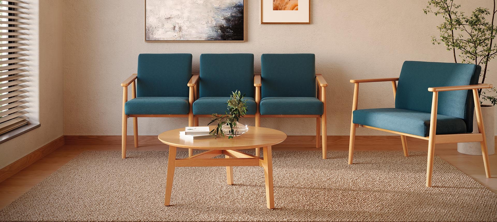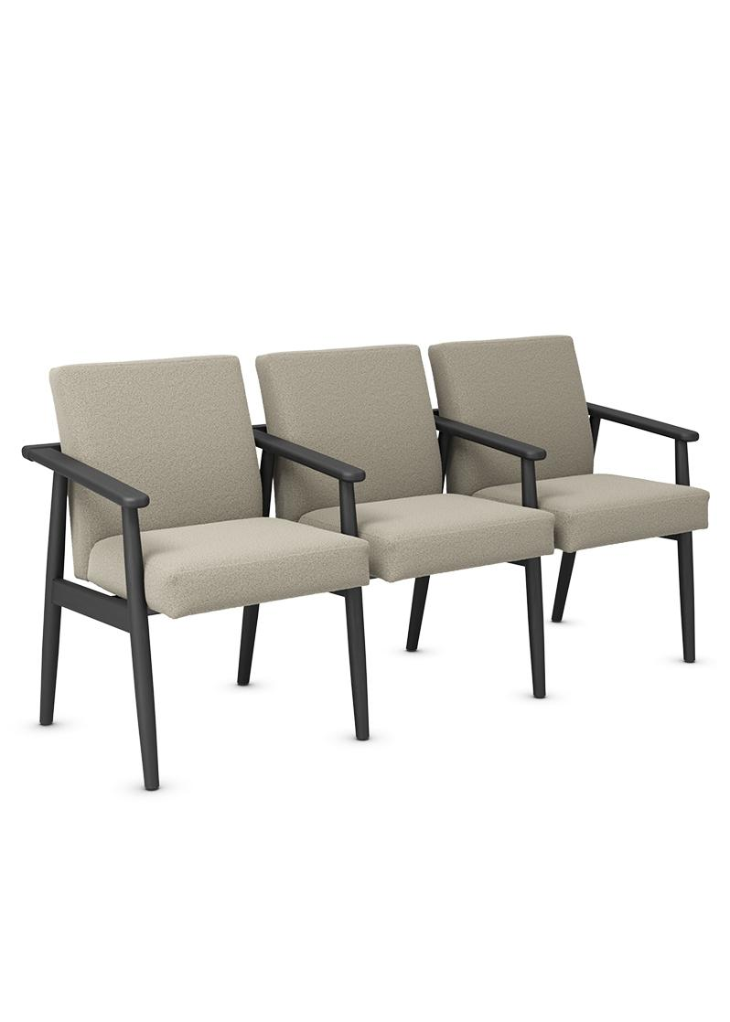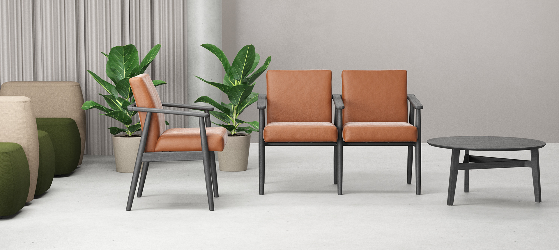 A linha é uma solução completa, disponível em configurações de longarina e complementada por mesa de centro. Essa abordagem qualifica diferentes ambientes com sua simplicidade refinada e presença marcante. A Rimeva oferece dois acabamentos técnicos para a madeira: a opção envernizada, que realça os veios naturais, e a preta ebanizada, que imprime alta intensidade, conferindo sobriedade e sofisticação ao projeto.