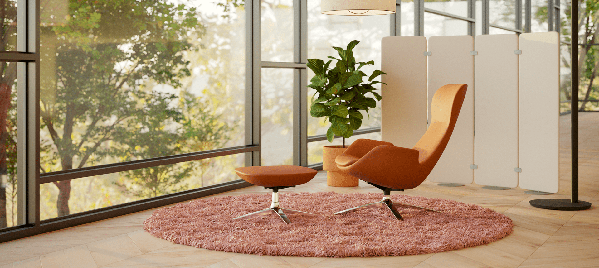 A Cavaletti Solo é uma solução de design contemporâneo, projetada para momentos individuais de descompressão. Seu encosto alto e formas acolhedoras garantem conforto superior, estimulando a mudança de postura para pausas mais efetivas (desempenho ergonômico maximizado com o Ottoman).